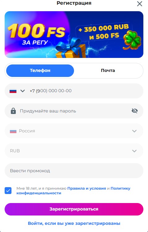 Получи до 350 000 ₽ + 600 фриспинов за регистрацию